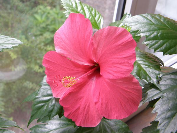 昨日まで蕾だったハイビスカスが、今朝見たら開花していた。