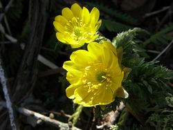 福寿草 キンポウゲ科の多年草 別名:ガンジツソウ(元日草) 【花言葉】 「幸福」 「幸せを招く」 「永久の幸福」 「回想」 「思い出」 日本では北海道から九州にかけて分布し山林に生育しており 春を告げる花の代表として福寿草という名は新春を祝う意味があります。 福寿草は日光が当たると開花し、日が沈むと花が閉じる性質なので 庭に植える時や鉢を置くなどの時は日当たりのいい場所へ。 また鉢で買われる方は、出来るだけ蕾が多くついたもので 深い鉢に植えられてる物を選んでください。