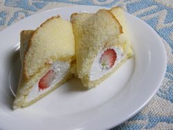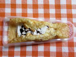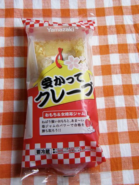 受かってクレープ 189円 (株)山崎製パン 購入店 SPAR おもち&女峰苺ジャムが入っており 『ねばり強いおもちと、あま~い苺ジャムのパワーで合格を勝ち取ろう!!』 と、書かれている。 なるほど、こういうのも有りなんだね。 ホイップの中にトロリとしたもち粉を使ったおもちが入っていて 特に違和感なく食べれてしまった。 案外おいしいなと、率直な感想を書いてみる。 受験生のみんな "o(-`д´- 。)ヵ゛ンハ゛レ