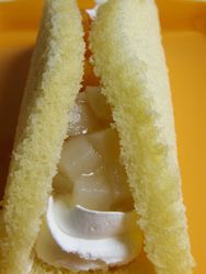 二種類のクリームのうち左の黄色いクリームはかぼちゃが混ざっておりました。