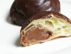 もちぷよ(チョコ) 160円 (株)山崎製パン 購入店 ローソン 見た感じ、「もちぷよ」にチョココーティングしてある。 袋には『チョコ掛けしたエクレアみたいなもちぷよ』と記載されてるが・・ このもちもち感も食感も、もちぶよそのものです。 しかし、中のチョコがなかなかおいしい。