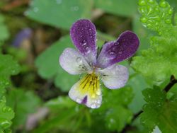 庭のスミレは雨に打たれてちょっと寒そうだけど