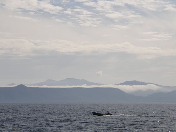 支笏湖の湖面をボートが駆ける
