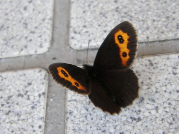ジャノメチョウの仲間で、北海道亜種は後翅表側に橙斑がないそうです。