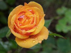 雨が続く中、その花弁に無数の宝石をまとって鮮やかに咲くミニバラも好き